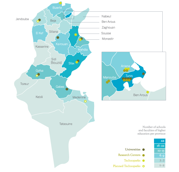 Read more about opportunities for improvingTunisia has a strong foundational infrastructure upon which to build an improved higher education system. A critical challenge for Tunisian leaders will be to bolster the interior provinces, where economic progress is stymied by a paucity of educational resources compared to the wealthier coastal provinces.